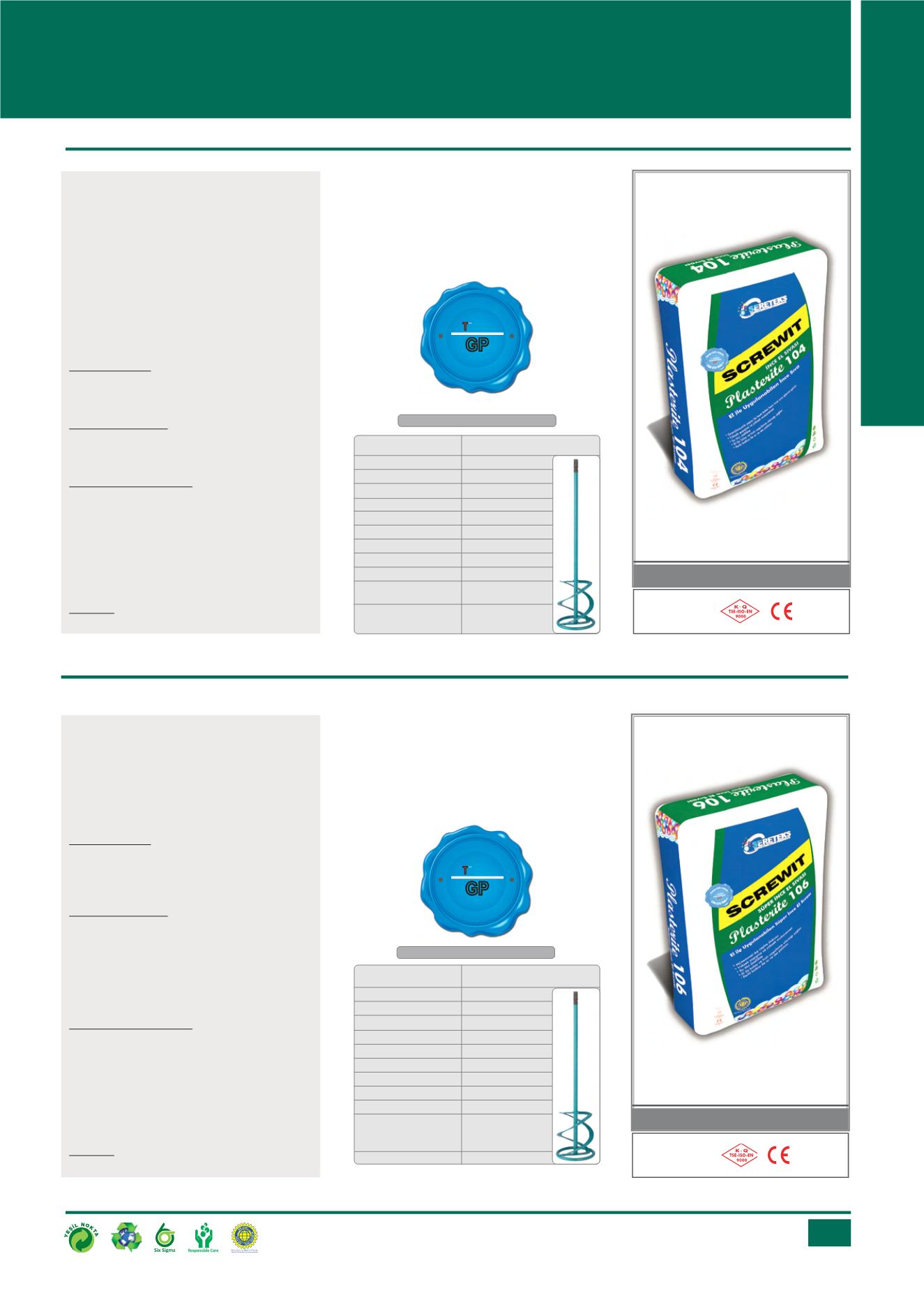 • PLASTERİTE 106 süper ince el sıvası, iç